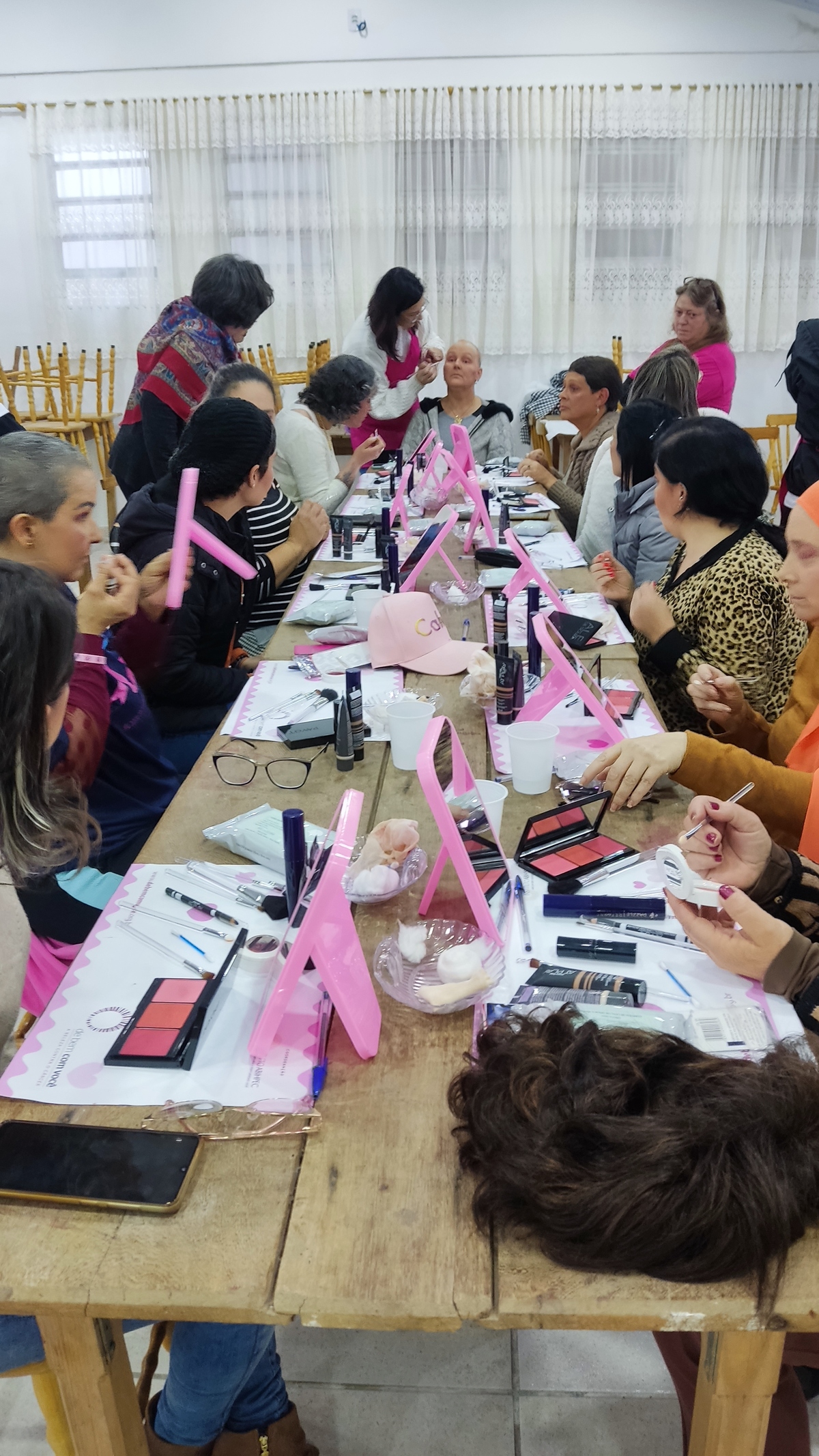 As oficinas são ministradas por maquiadores voluntários e acontecem nos hospitais, clínicas, casas de apoio, ONGs parceiras e também em formato virtual.